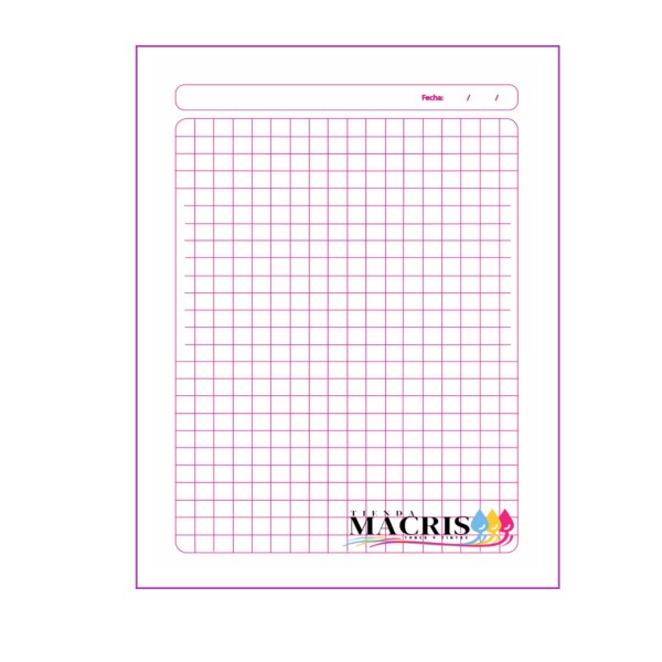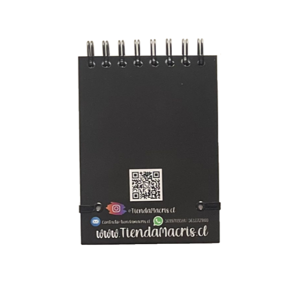 una vez realizada la compra, debes contactarnos indicando el numero de orden o enviarnos al mail contacto@tiendamacris.cl, el diseño y logo de tu libreta.