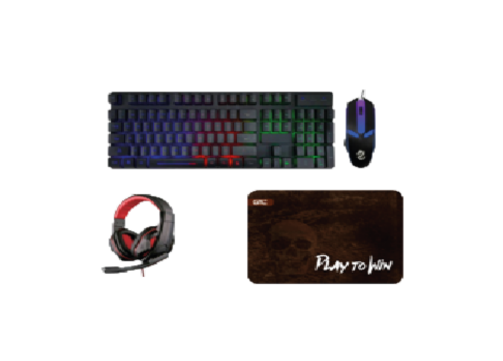 KIT GAMER, TECLADO, MOUSE, PADMOUSE, AUDIFONO, SET GAMER, ECONOMICO, KIT GAMER 4 EN 1